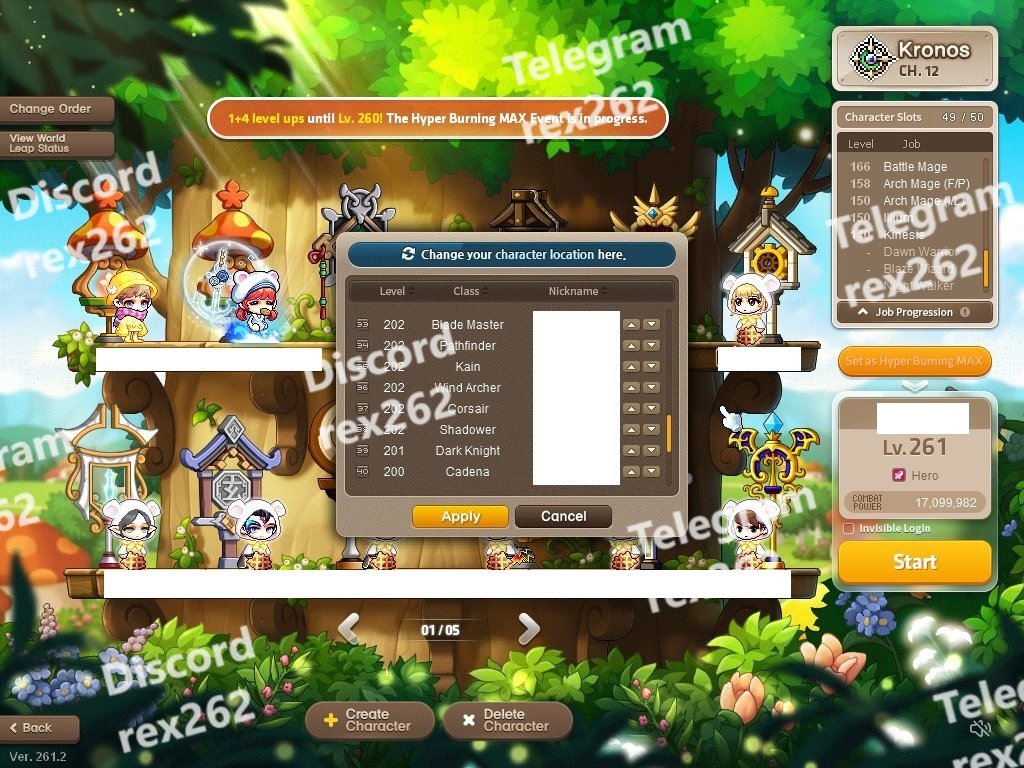 • Multiple chars Lvl 200–224: Ark, Dark Knight, Mercedes, Evan, Sia Astelle,