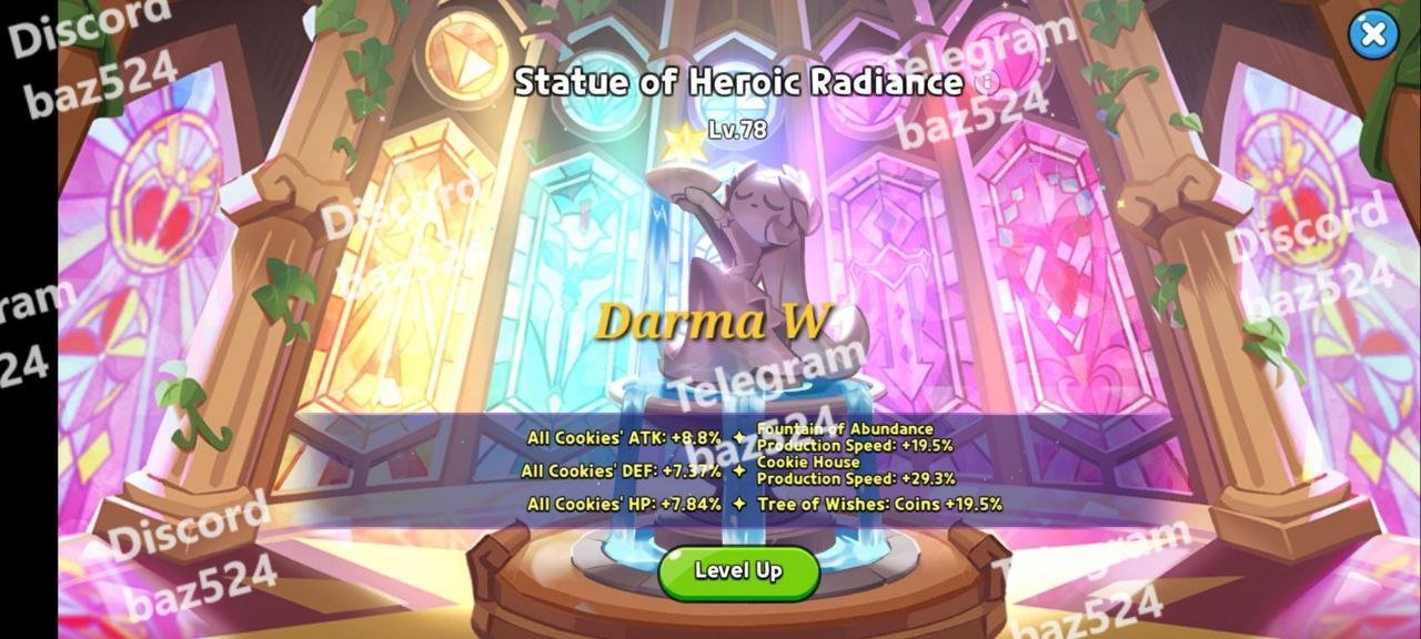 Statue of Heroic Radiance Lv 78: All cookies receive significant stat boosts from the Heroic Radiance and additional bonuses like Tree of Wishes coin boosts.