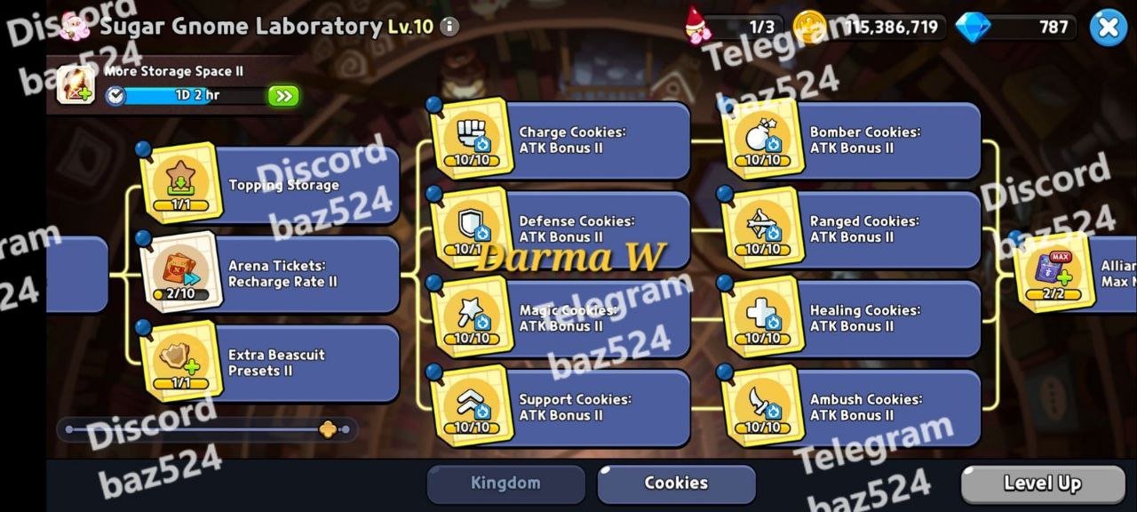 Laboratory Lv 10: Fully upgraded Sugar Gnome Lab with research completed on key cookie types: Charge, Magic, Bomber, Ranged, and more for increased power and versatility in combat.