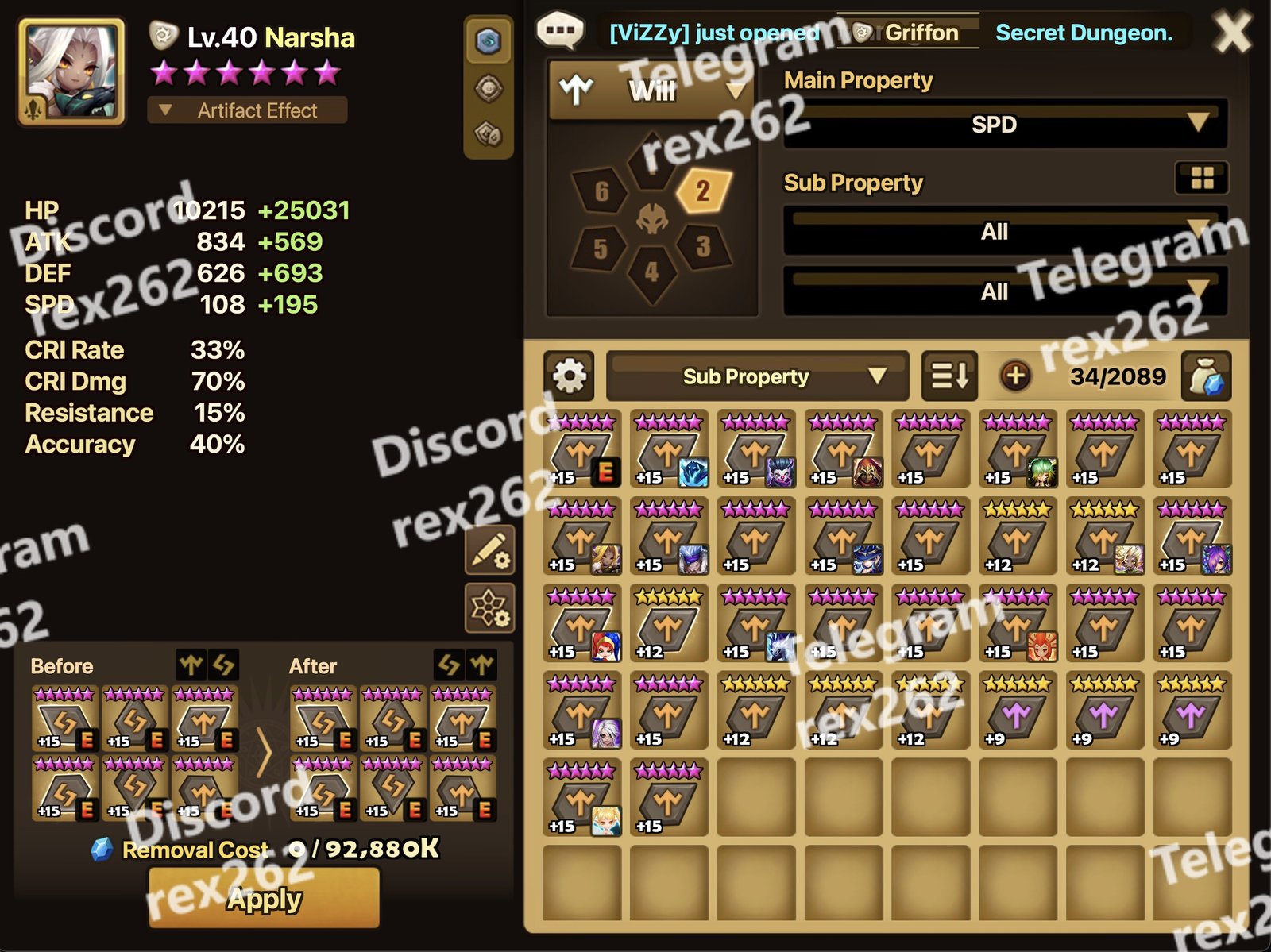 Will Rune Quality: CRI Rate 58% + ATK% + SPD + DEF%